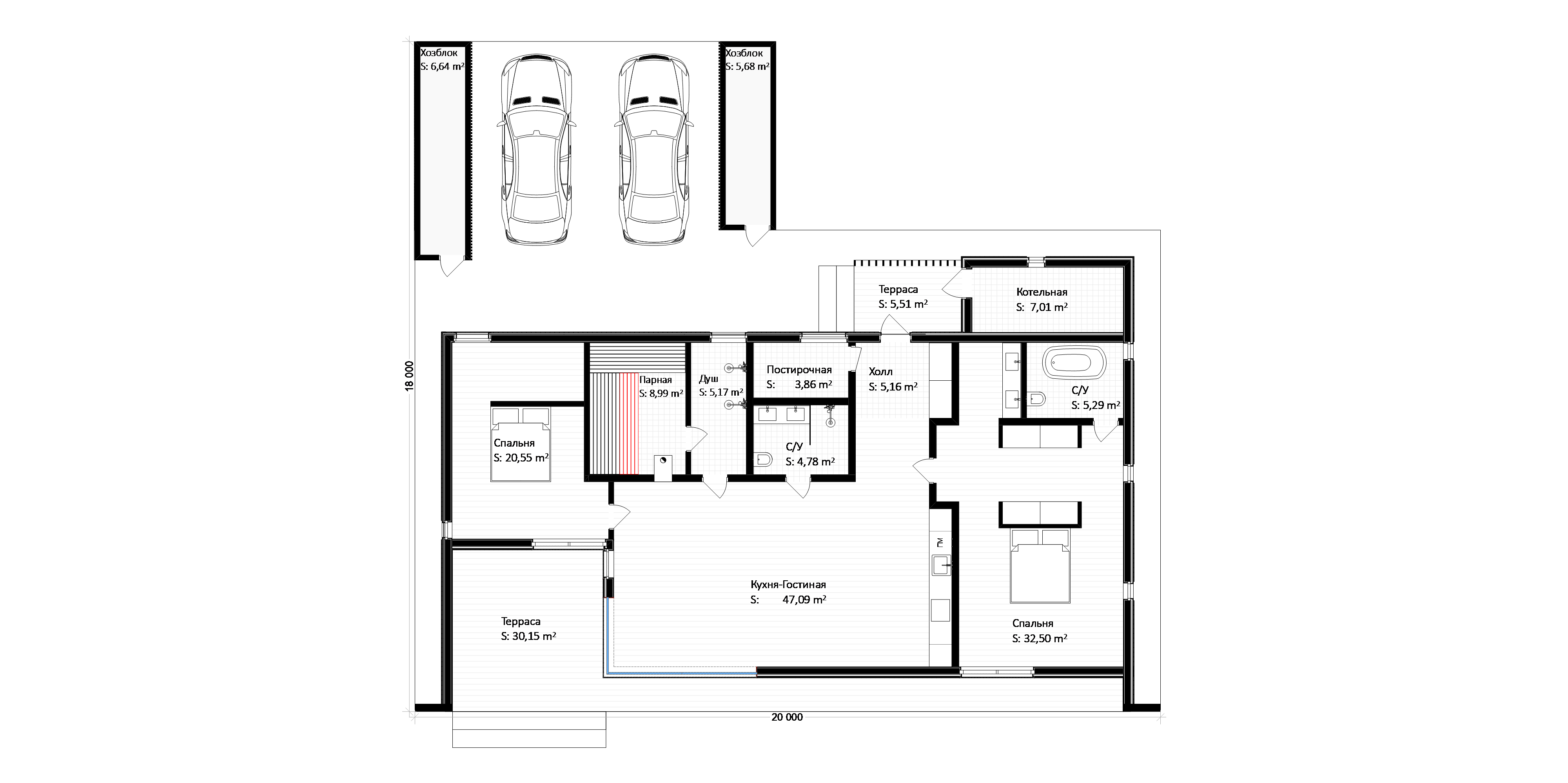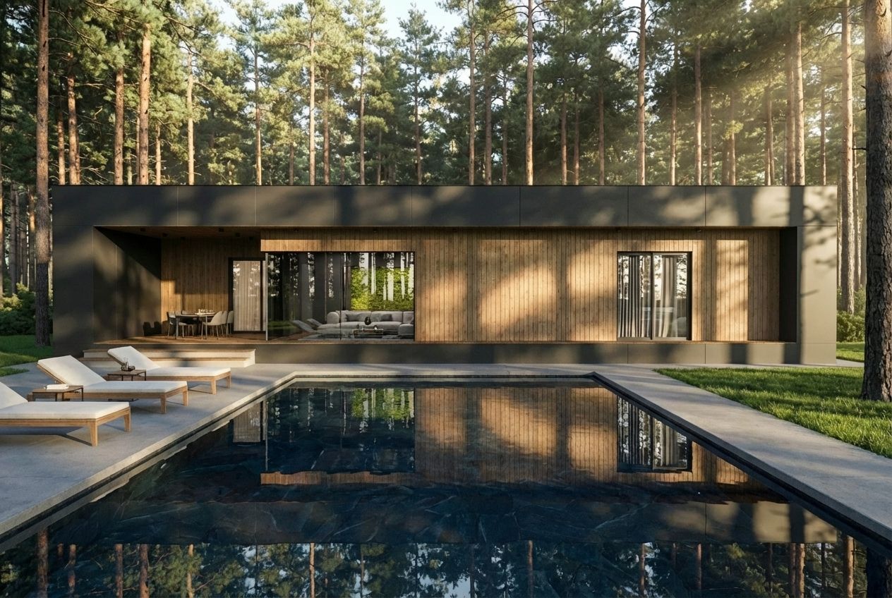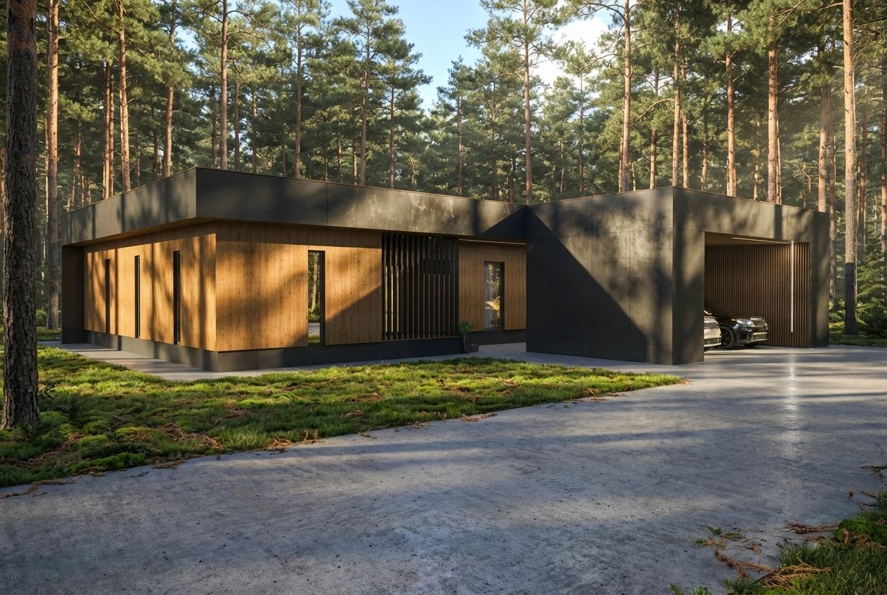 Современная вилла с панорамным остеклением и плоской кровлей — идеальный баланс эстетики и функционала. Планировка: Огромная кухня-гостиная — сердце дома, залитое светом. Спальня с личным гардеробом и собственной ванной комнатой. Дополнительная спальня и общий санузел. Банный комплекс для релаксации. Продуманная прихожая, постирочная и отдельная котельная. Гараж-навес на 2 авто и 2 функциональных хоз-блока. Архитектура, где каждый метр работает на ваш комфорт.